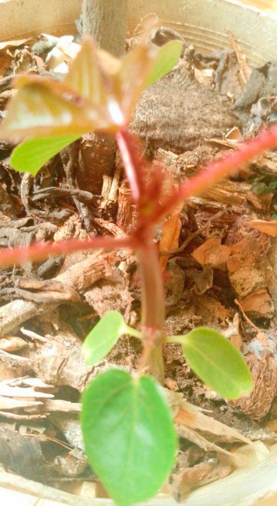 Me encontré con una pequeña tuatua morada, nunca la había visto pequeña, ellas nacen desde semillas y también por esquejes de las ramas, en la parte inferior del tallo pueden ver las dos primeras hojas que salieron de la semilla. Esta planta es medicinal, sirve para desinflamar, bajar la fiebre, asma y bronquitis, indigestión, diarrea, antioxidante, cólicos menstruales, estreñimiento, diurético y dolores de garganta. Todas las plantas medicinales deben de ser cultivadas en los centros urbanos para procurar su producción y divulgación de sus usos.