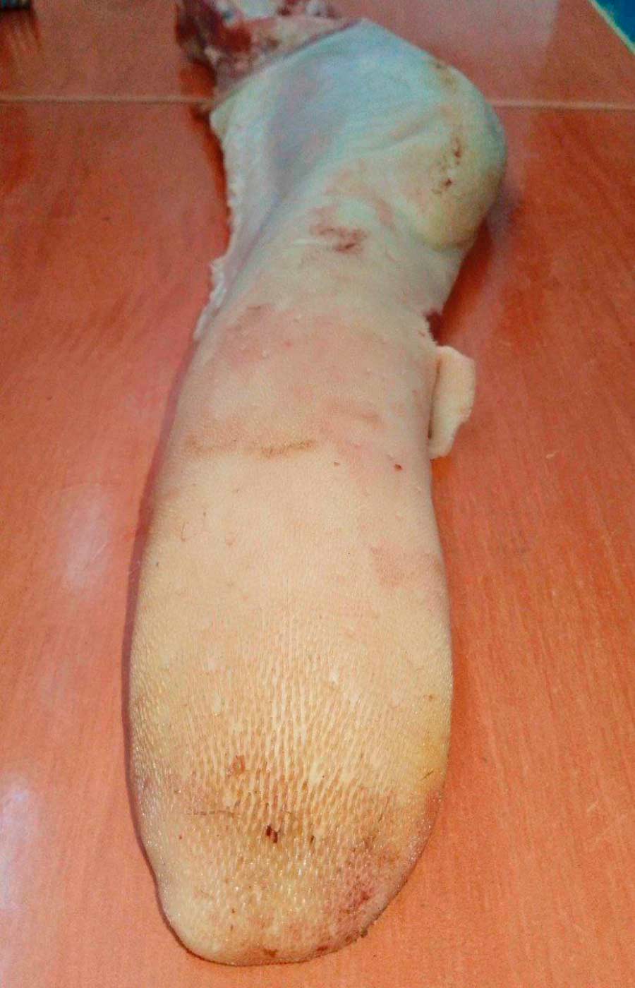 Ahora les muestro ña ñengua que usamos para realizar el plato gastronómico publicado anteriormente, como podrán observar es una lengua sola, cruda de vaca o toro, midió aproximadamente 52 centímetros de largo y pesó 1 kilogramo con 95 gramos, casi 2 kilogramos. Existen otros animales con lenguas muchos mucho más largas.